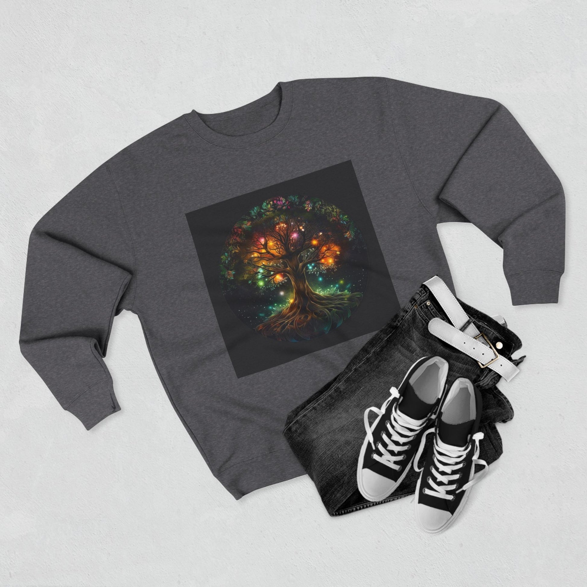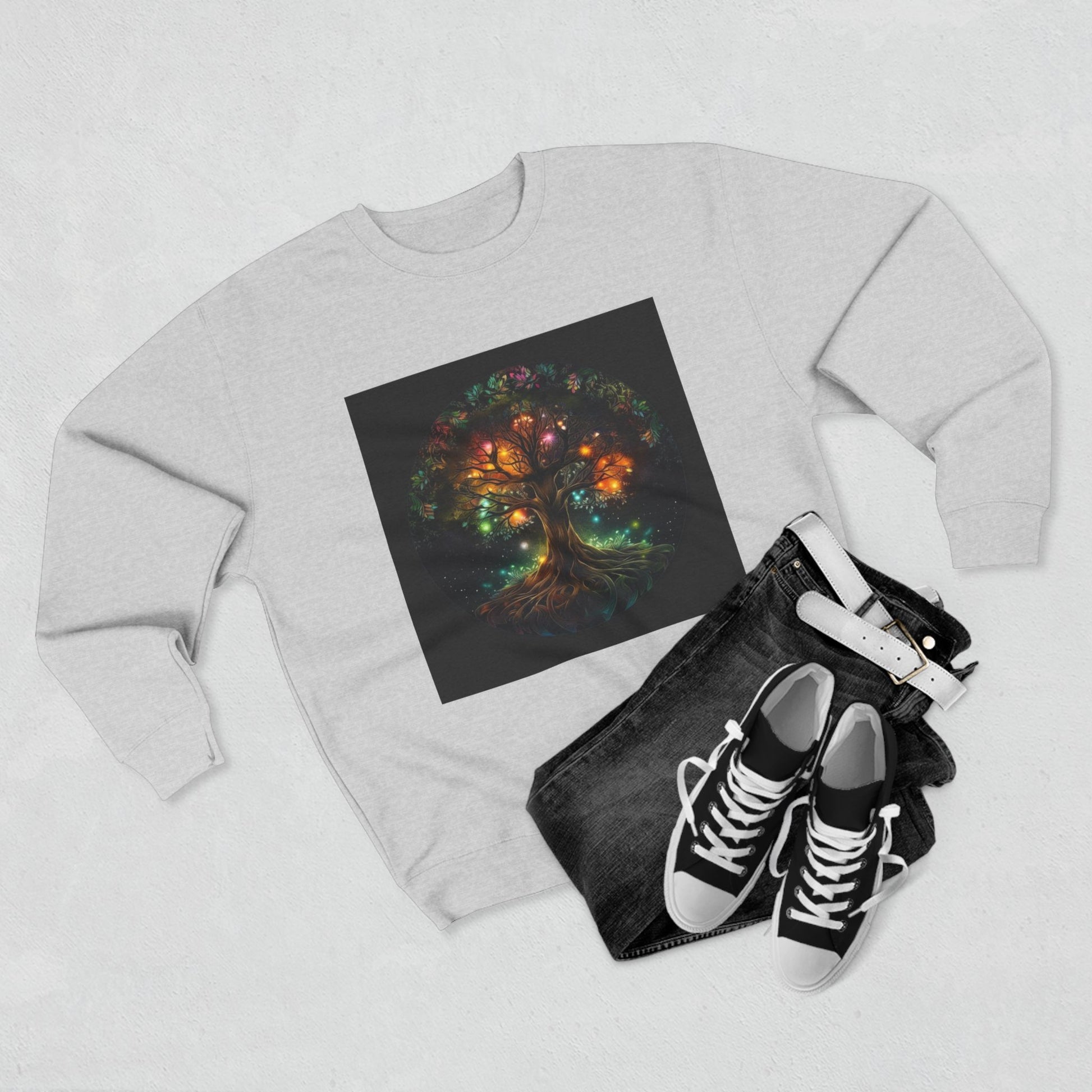 Embrace comfort and style with our Unisex Crewneck Sweatshirt, perfect for those cozy days at home or casual outings. The vibrant design features a captivating tree adorned with colorful lights, bringing a warm and inviting atmosphere wherever you go. Ideal for anyone who enjoys unique, artistic apparel, this sweatshirt is a fantastic gift for art lovers and nature enthusiasts alike. It’s suitable for various occasions like birthdays, holidays, or just to brighten someone's day. Pair it with jeans or joggers for a laid-back look, or layer it for a trendy vibe during chilly evenings.